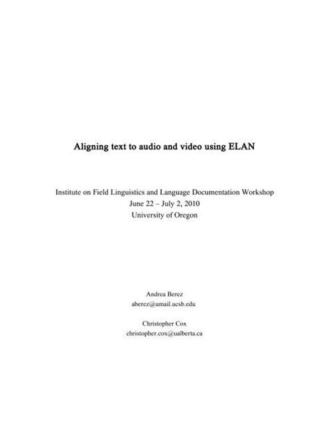 Read Online Aligning Text to Audio and Video Using ELAN pdf Hardcover ManyBooks